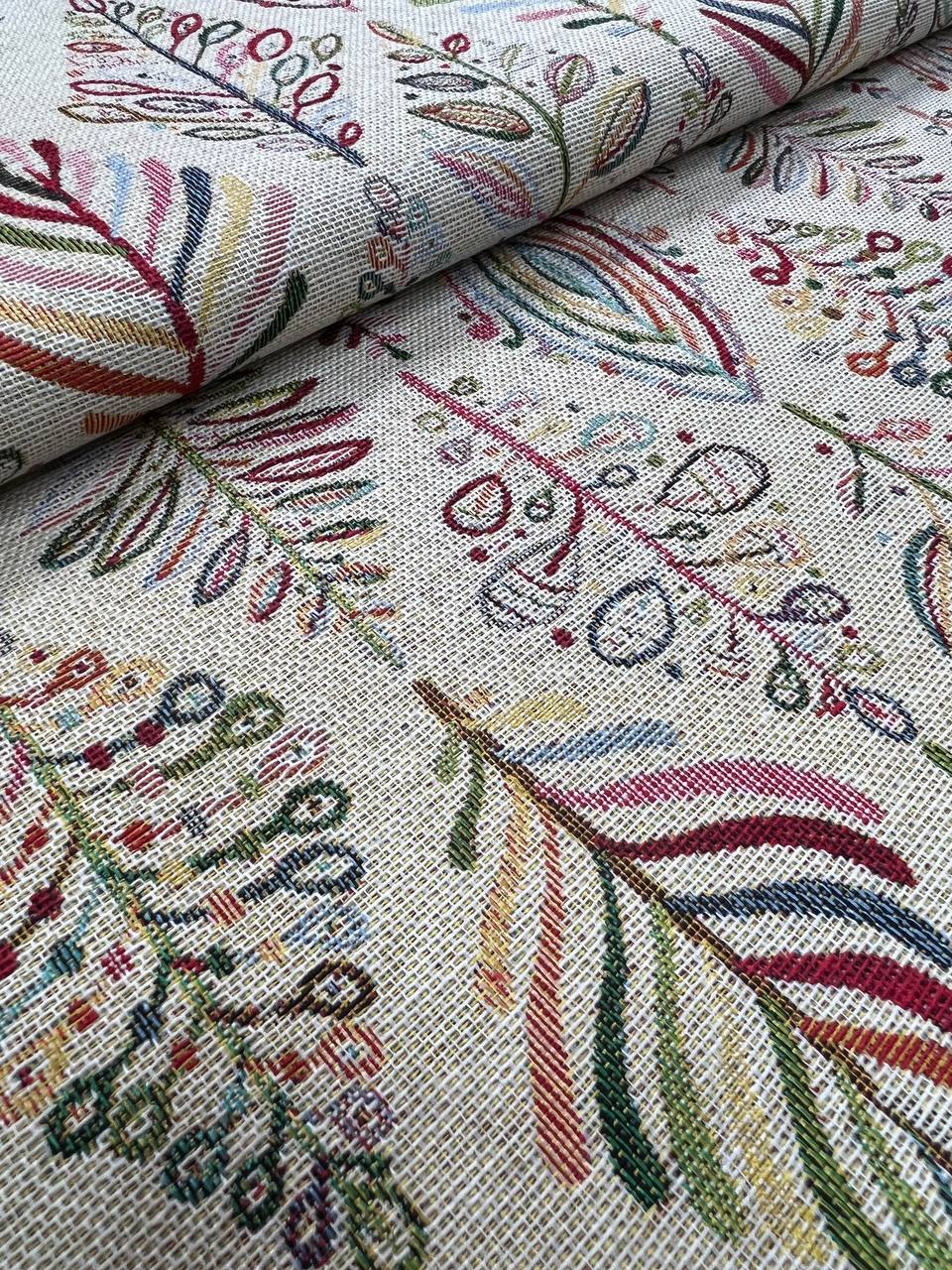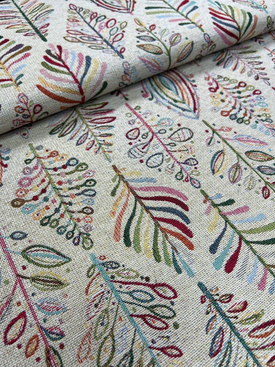 Високоякісна гобеленова тканина Fosil з геометричним малюнком. Вироблено в Іспанії. Таку тканину можна використати для виготовлення подушки, скатертини, верхнього одягу чи іншого декору. Ширина тканини 280 см. Також можна придбати таку ж тканину в ширині 140 см.