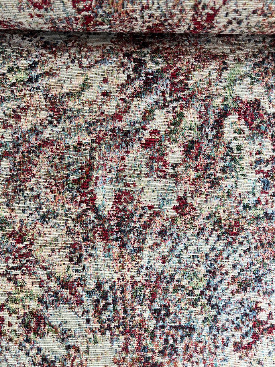 Високоякісна гобеленова тканина з абстрактним малюнком. Вироблено в Іспанії. Таку тканину можна використати для виготовлення подушки, скатертини, верхнього одягу чи іншого декору. Ширина тканини 280 см.