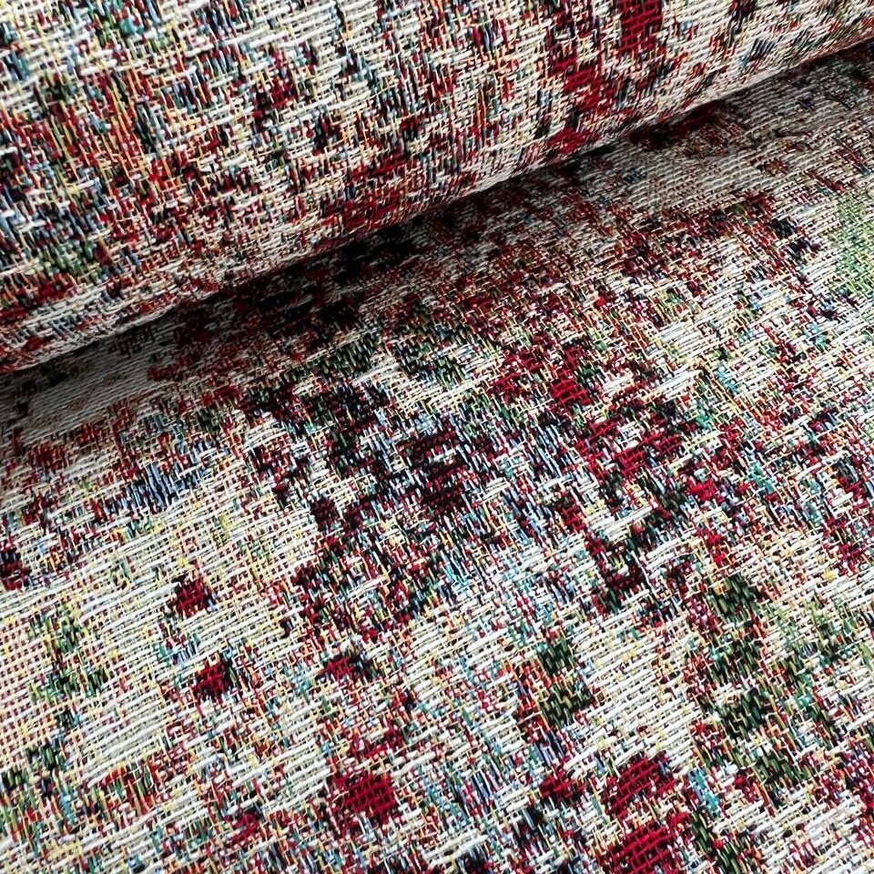 Гобеленова тканина з абстрактним малюнком. Можна використати для виготовлення подушки, скатертини, верхнього одягу чи іншого декору. Вироблено в Іспанії. Ширина тканини 280 см.