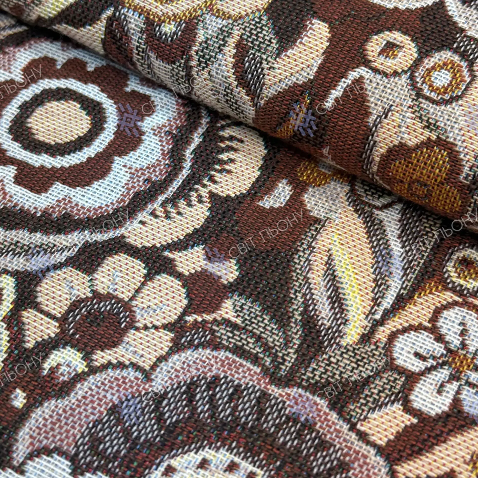 Гобелен має щільну структуру, стійкий до зношування, добре тримає форму та легко піддається обробці. Це надійний матеріал як для домашнього, так і для професійного використання.