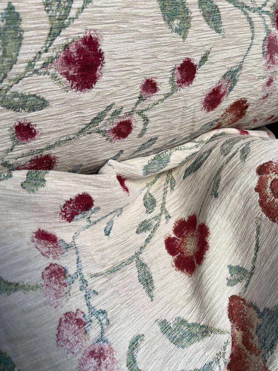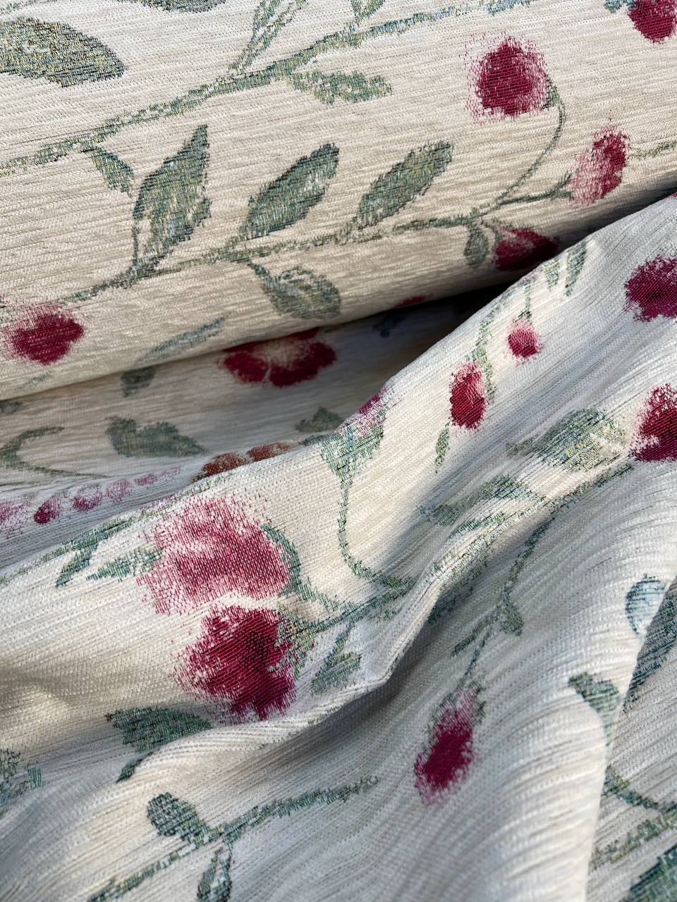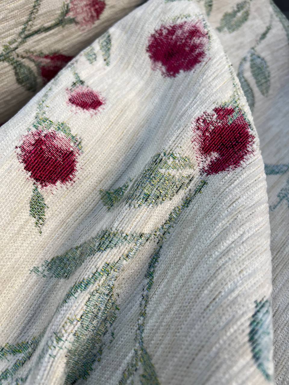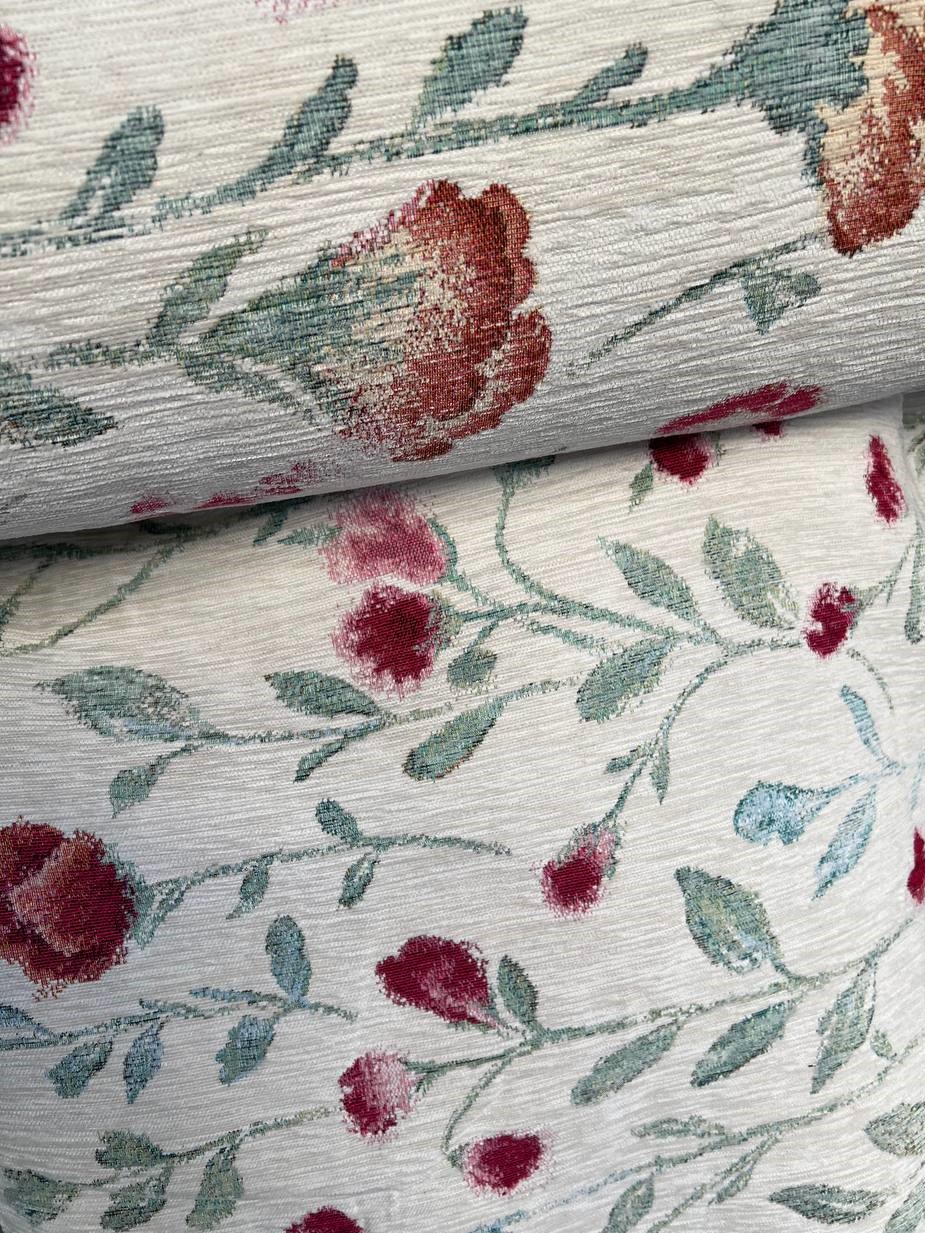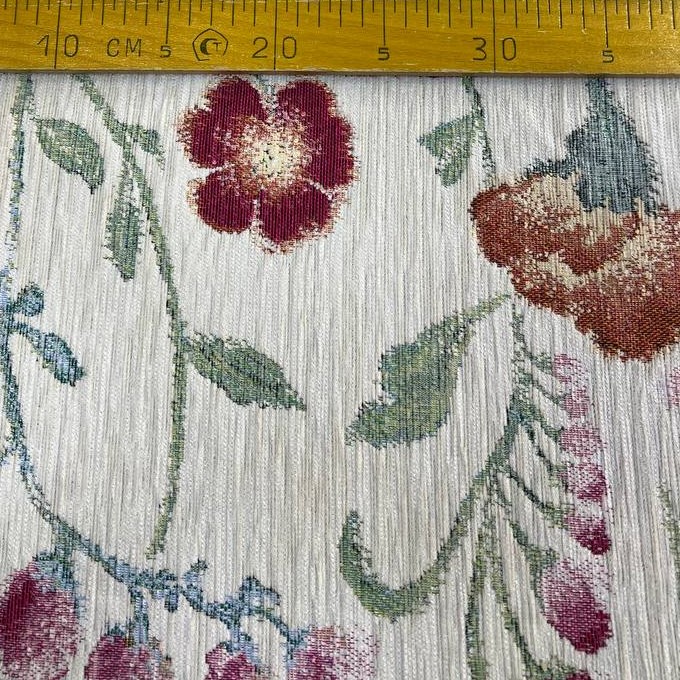 Високоякісна гобеленова оксамитова тканина Азу з квітковим малюнком. Вироблено в Іспанії. Таку тканину можна використати для виготовлення подушки, скатертини, верхнього одягу чи іншого декору. Ширина тканини 280 см. Також можна придбати таку ж тканину в ширині 140 см.