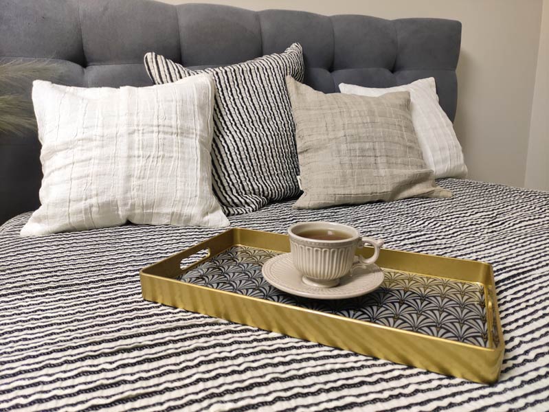 Покривало декоративне з льону, 3D-тканина в чорно-білу смужку, індивідуальний пошив