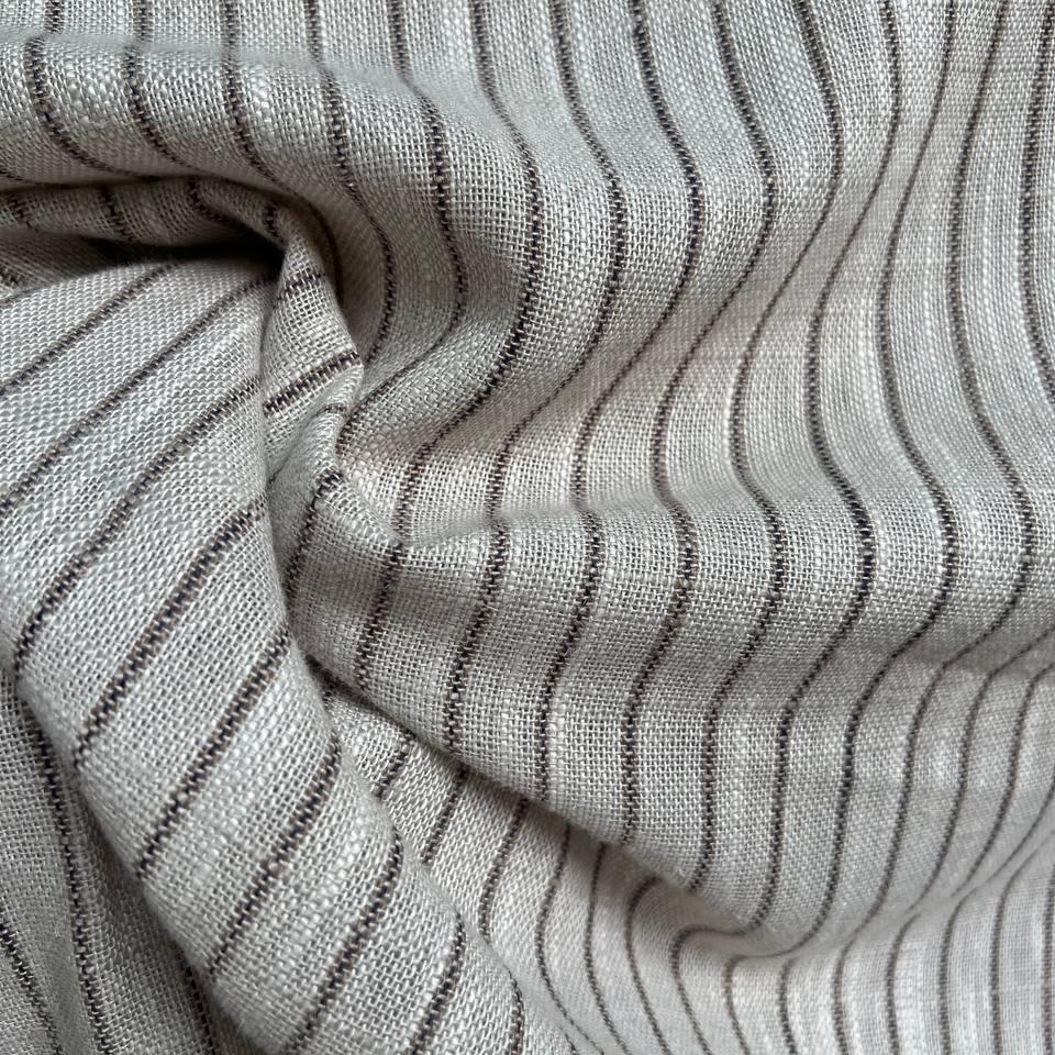 Напівлляна Тканина з Віскозою – Сірий з Тонкою Смужкою