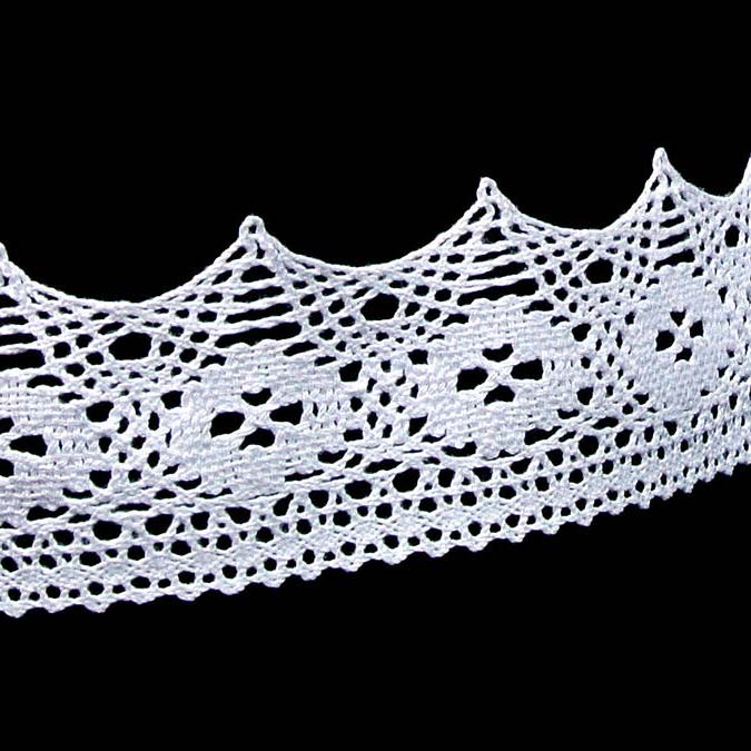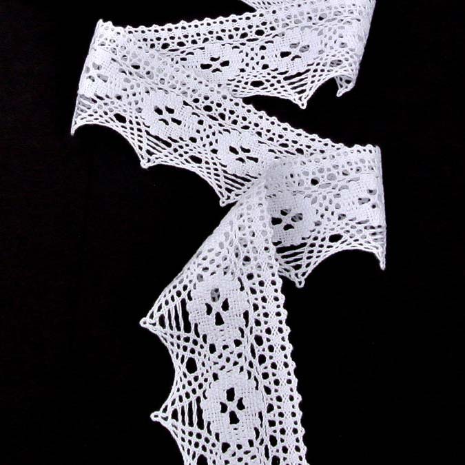 Якісне мереживо вироблене на коклюшних машинах з високоякісної бавовняної мерсеризованої пряжі. Це мереживо підходить для декорування одягу, костюмів, пошиття аксесуарів для дому, текстильних аплікацій, печворку, креативних витворів, скрапбукінгу, колажів, святкових композицій та флористики. Купити онлайн. Роздріб та гурт. Виробництво — Чехія.