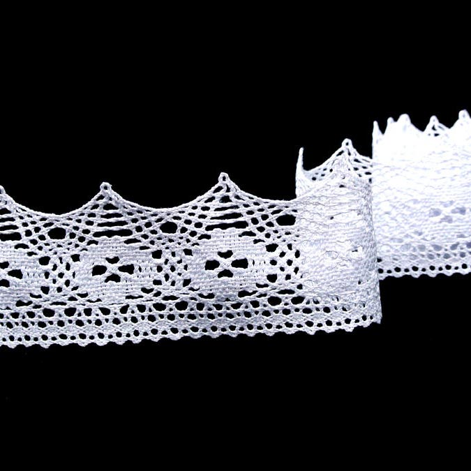 Якісне мереживо вироблене на коклюшних машинах з високоякісної бавовняної мерсеризованої пряжі. Це мереживо підходить для декорування одягу, костюмів, пошиття аксесуарів для дому, текстильних аплікацій, печворку, креативних витворів, скрапбукінгу, колажів, святкових композицій та флористики.