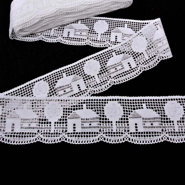 Якісне мереживо вироблене на коклюшних машинах з високоякісної бавовняної мерсеризованої пряжі. Це мереживо підходить для декорування одягу, костюмів, пошиття аксесуарів для дому, текстильних аплікацій, печворку, креативних витворів, скрапбукінгу, колажів, святкових композицій та флористики.