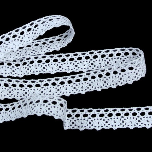 Якісне мереживо вироблене на коклюшних машинах з високоякісної бавовняної мерсеризованої пряжі. Це мереживо підходить для декорування одягу, костюмів, пошиття аксесуарів для дому, текстильних аплікацій, печворку, креативних витворів, скрапбукінгу, колажів, святкових композицій та флористики.