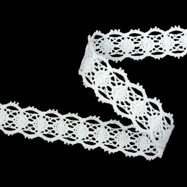 Якісне мереживо вироблене на коклюшних машинах з високоякісної бавовняної мерсеризованої пряжі. Це мереживо підходить для декорування одягу, костюмів, пошиття аксесуарів для дому, текстильних аплікацій, печворку, креативних витворів, скрапбукінгу, колажів, святкових композицій та флористики. Купити онлайн. Роздріб та гурт. Виробництво — Чехія.
