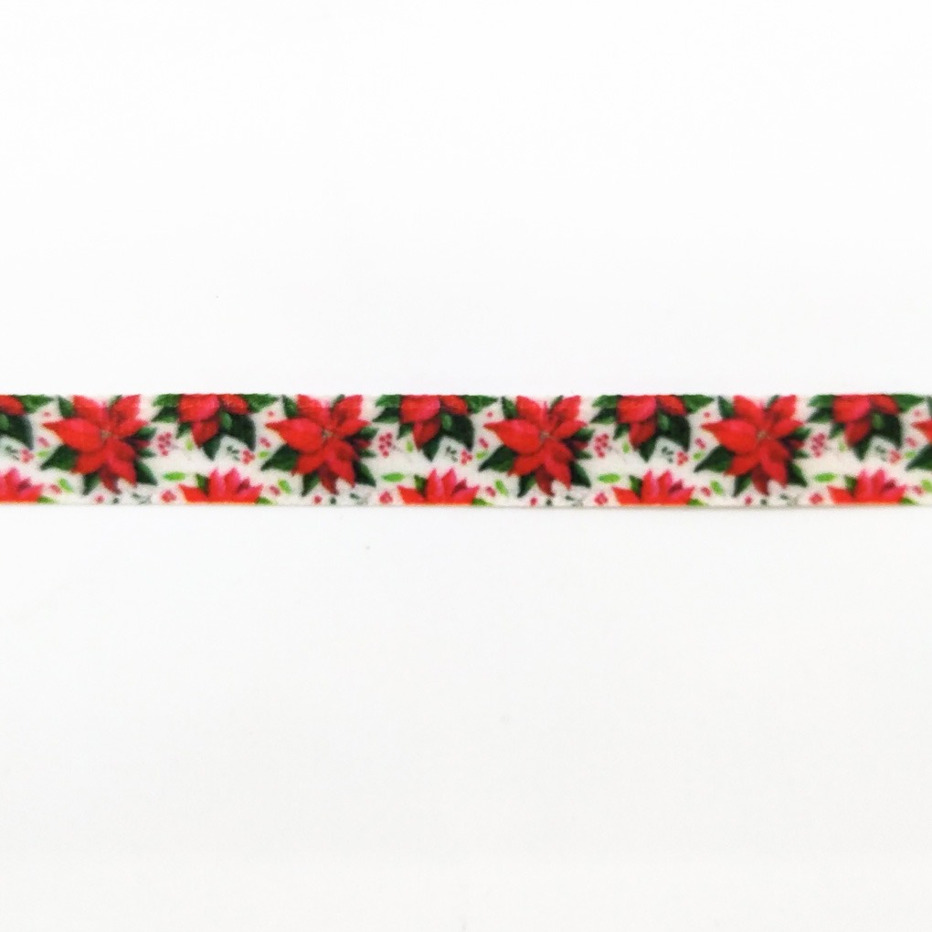 Стрічка з друком атласна новорічна 8147356/10 червоні квіти