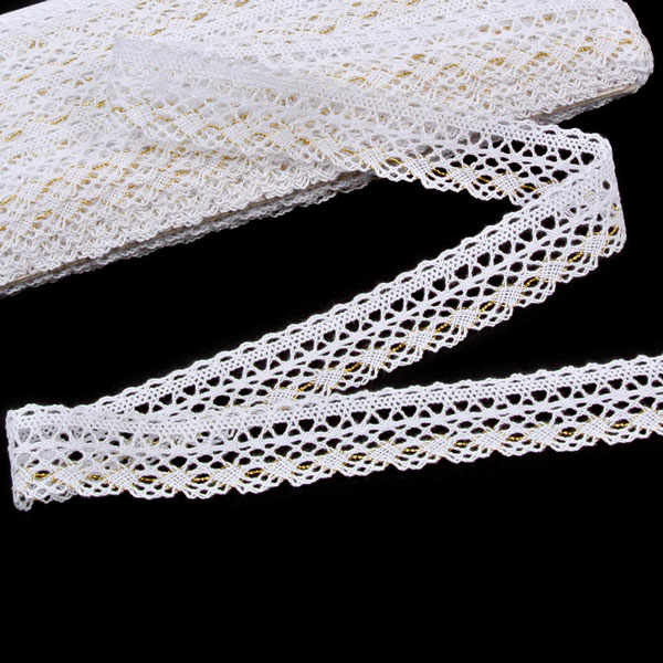 Якісне мереживо вироблене на коклюшних машинах з високоякісної металевої пряжі. Це мереживо підходить для декорування одягу, костюмів, пошиття аксесуарів для дому, текстильних аплікацій, печворку, креативних витворів, скрапбукінгу, колажів, святкових композицій та флористики.