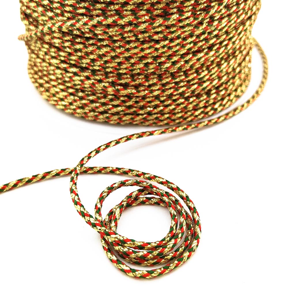 Тасьма металізована 1,65 мм, золото, червоний, зелений