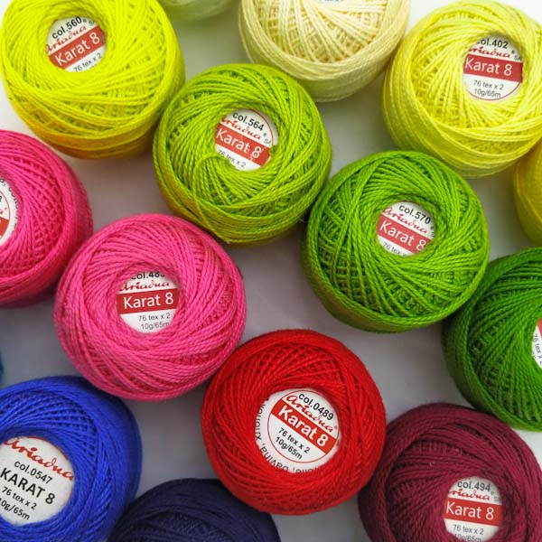 Нитки Аріадна Карат 8 м’якші і легше скручені у порівнянні з DMC Pearl. Підходять для вишивки, змережування країв та гачкування декоративних виробів.