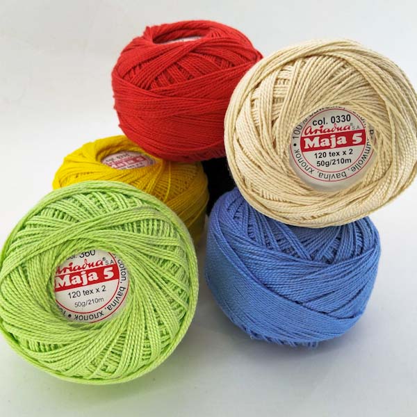 Ariadna Maja 5 має скрутку із 2 ниток, складається із 100% бавовни.