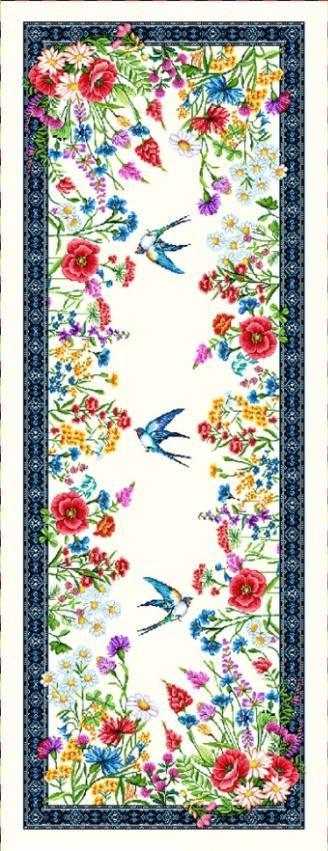 Доріжка (ранер) з високоякісного іспанського гобелену. Дизайни: Лотос, Пташки, Арт, Ромашки, Гарбузи, Лаванда. Розмір 45 см на 140 см та 40 см на 100 см.