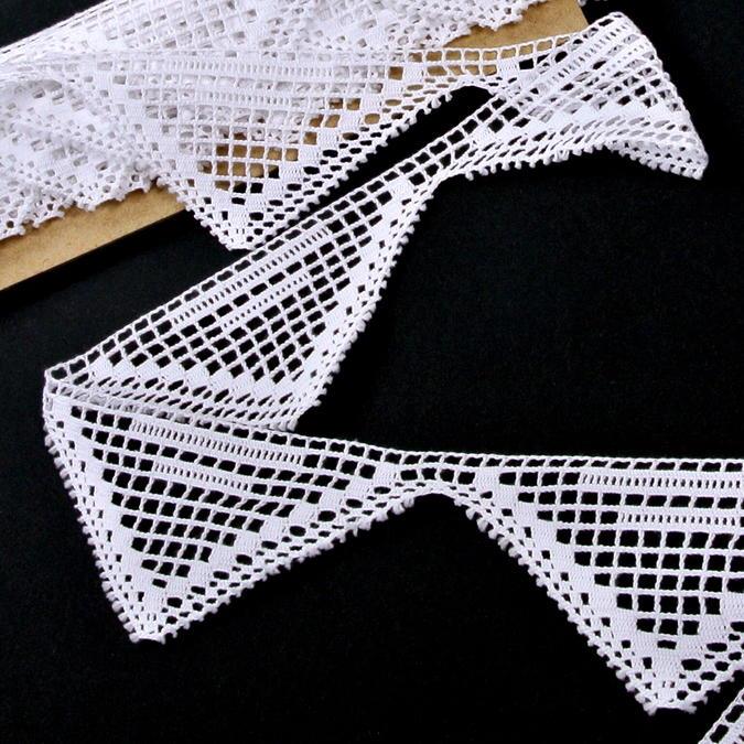 Якісне мереживо вироблене на коклюшних машинах з високоякісної бавовняної мерсеризованої пряжі. Це мереживо підходить для декорування одягу, костюмів, пошиття аксесуарів для дому, текстильних аплікацій, печворку, креативних витворів, скрапбукінгу, колажів, святкових композицій та флористики. Купити онлайн. Роздріб та гурт. Виробництво — Чехія.