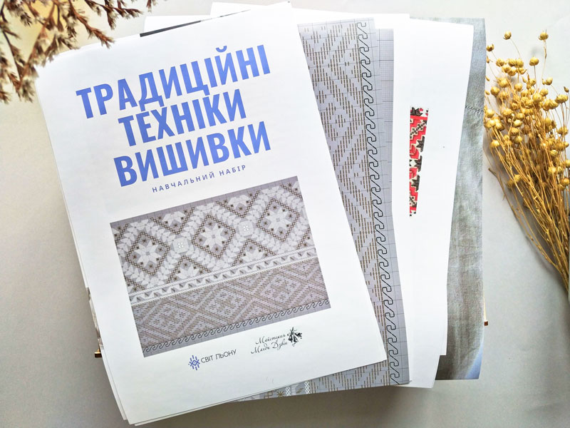 Отже, представляємо навчальний набір для вишивальниць, які роблять перші проби стібка. У ньому – зразки тканин, нитки та інструменти – тобто все, що потрібно для того, щоб поринути у чарівний світ української вишивки. Друковані навчальні матеріали підготовлено спільнj із “Майстерня Магди Дзвін”.