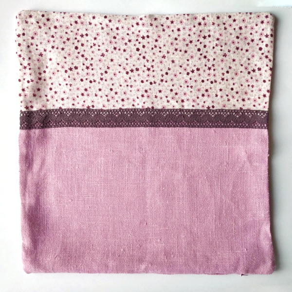 Декоративна наволочка на подушку. Бавовна + лляна мішковина + мереживо. 40*40 см.