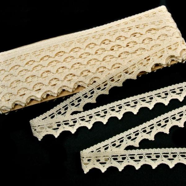 Якісне мереживо вироблене на коклюшних машинах з високоякісної бавовняної мерсеризованої пряжі. Це мереживо підходить для декорування одягу, костюмів, пошиття аксесуарів для дому, текстильних аплікацій, печворку, креативних витворів, скрапбукінгу, колажів, святкових композицій та флористики.