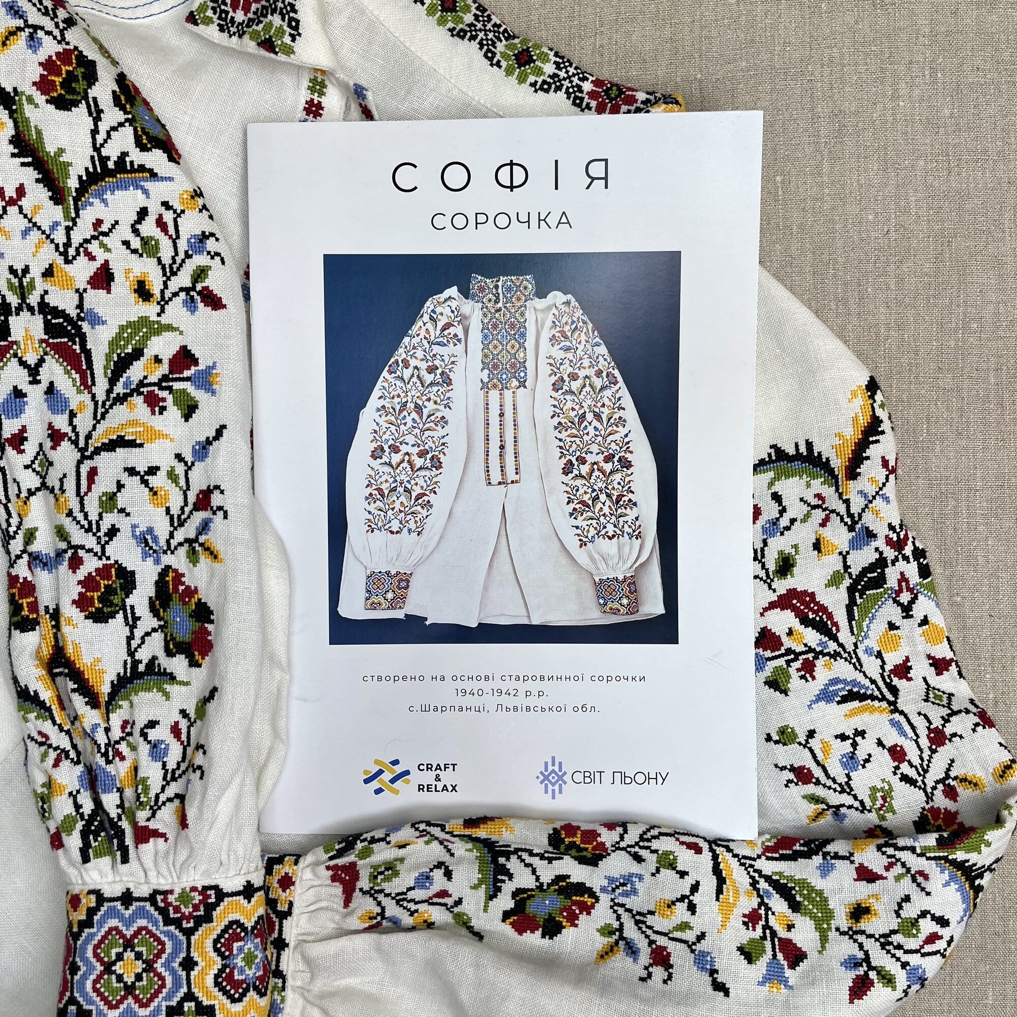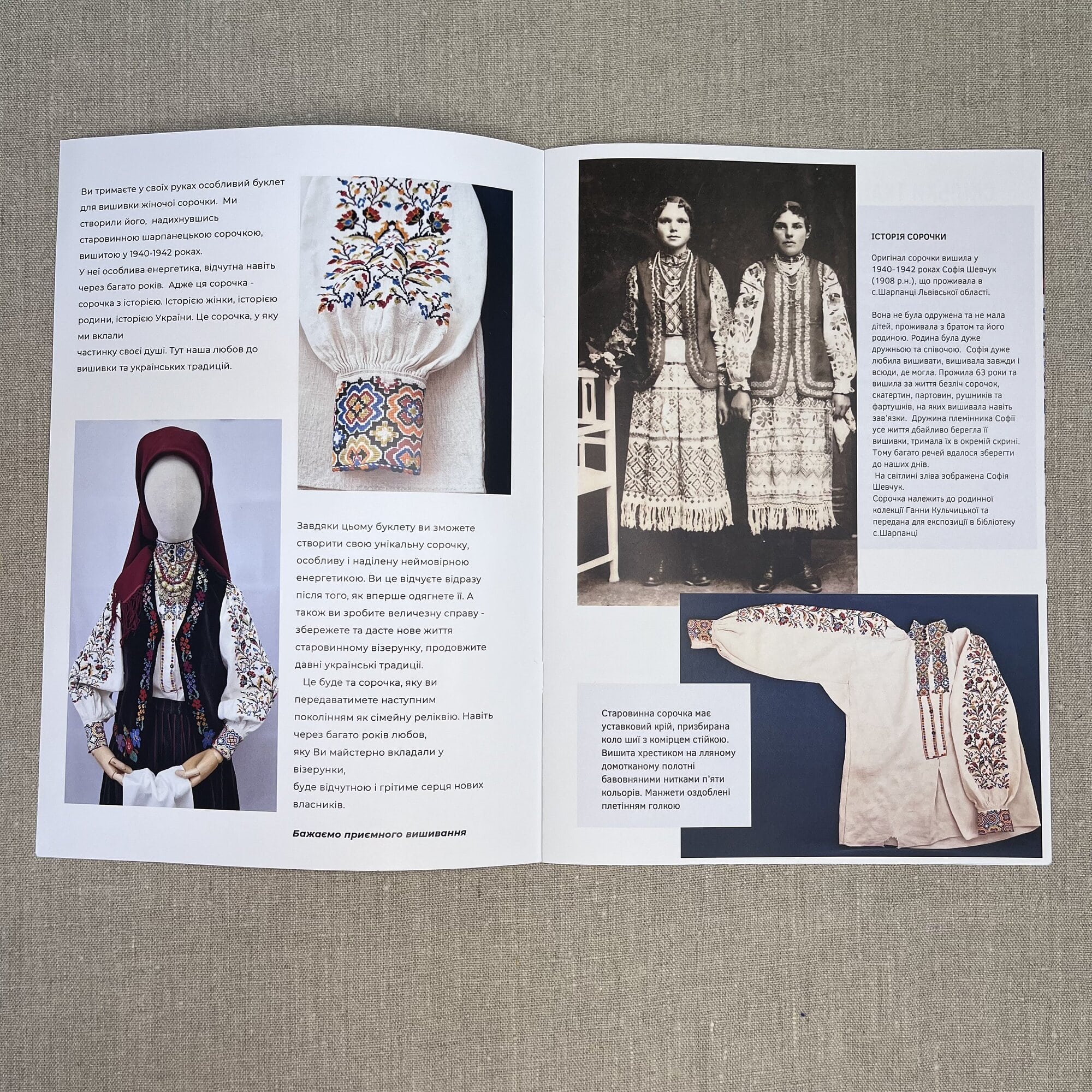 Ця схема втілена з ідеї старовинної шарпанецької сорочки, вишитої 1940-1942 років, та вражає своєю особливою енергетикою. Кожен вишитий мотив переносить нас у часи минулого, але водночас зберігає в собі свіжість та витонченість. Ця сорочка – не лише твір мистецтва, але історія жінки, родини, і власне, історія України.