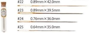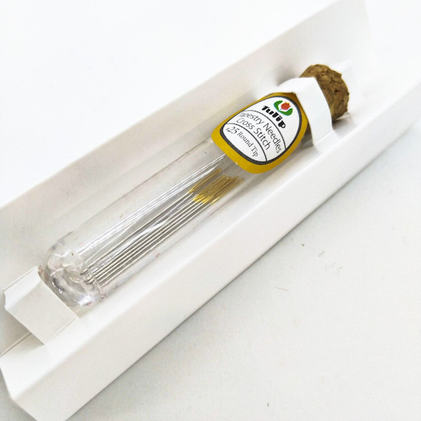 Голка із широким позолоченим вушком і тупим заокругленим кінчиком, що не роз’єднує нитки основи тканини, а легко проникає між ними.